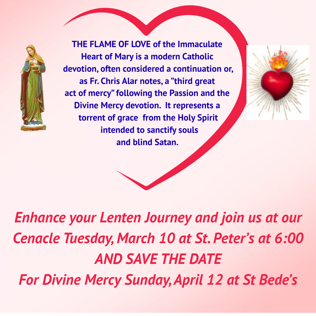 Join one or all of our many opportunities to grow closer to Christ through His Blessed Mother. We especially welcome everyone to join us for Mass at St. Peter on March 10th.