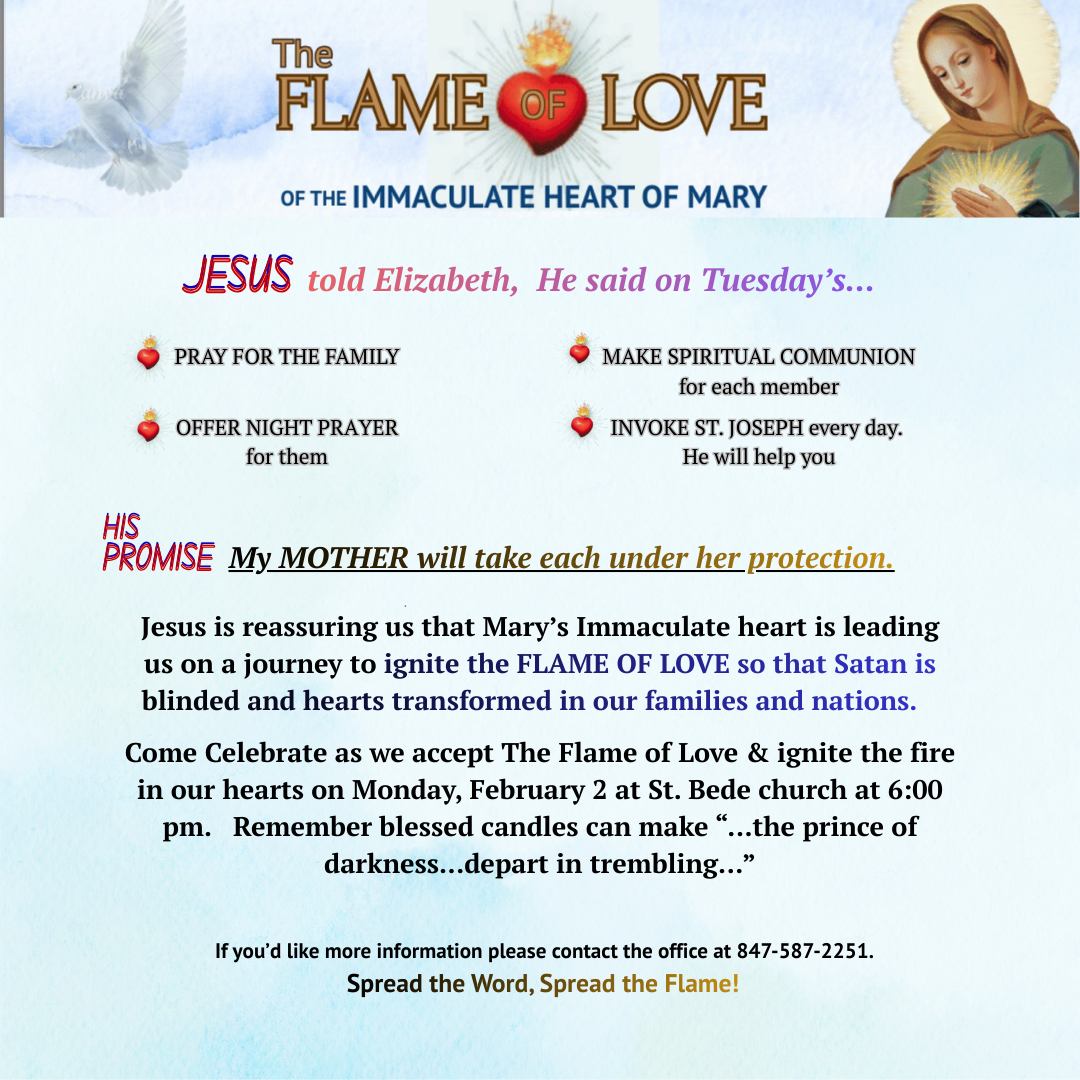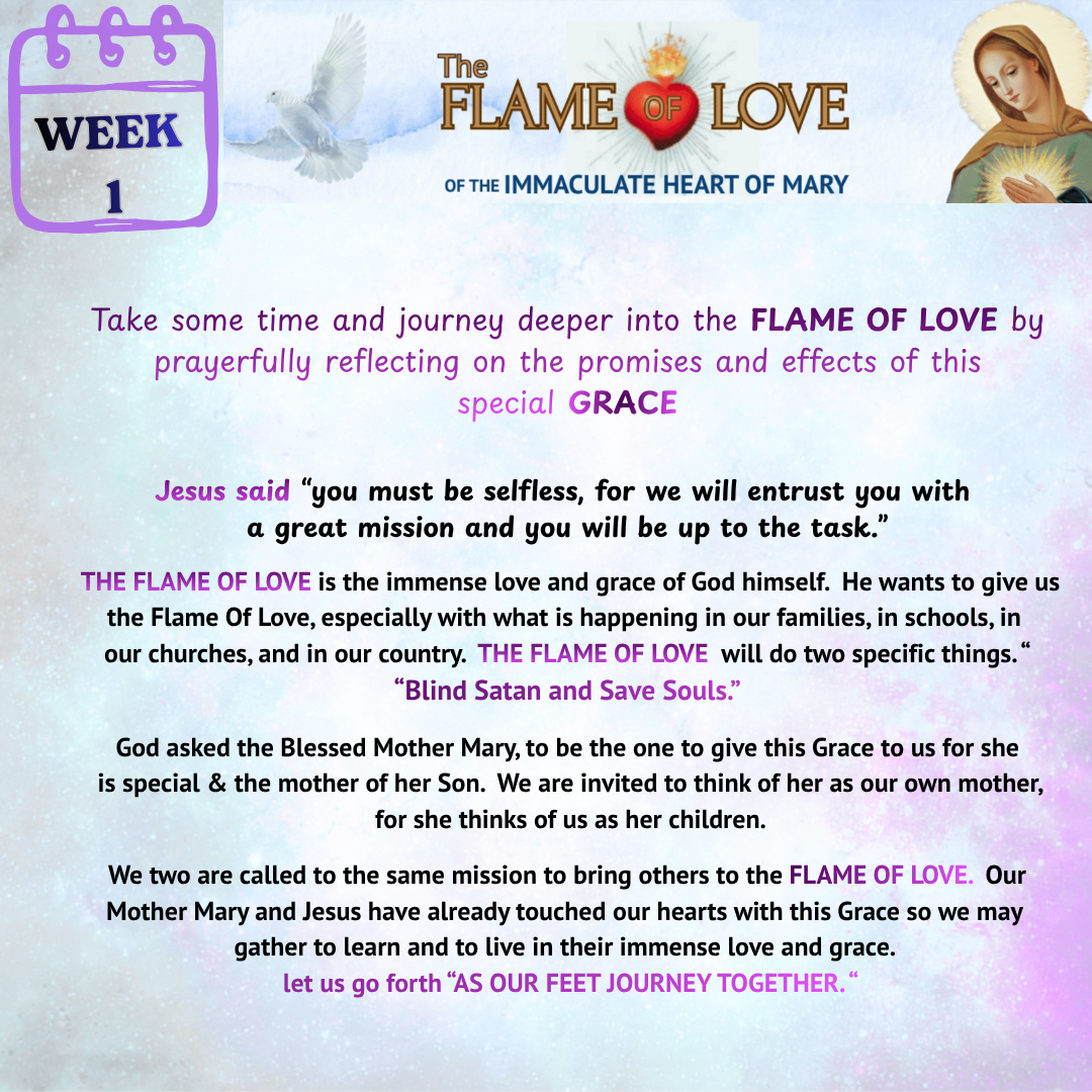 To continue to learn more about the Flame of Love devotion and movement or to read testimonials of those blessed by this devotion please see the website here: