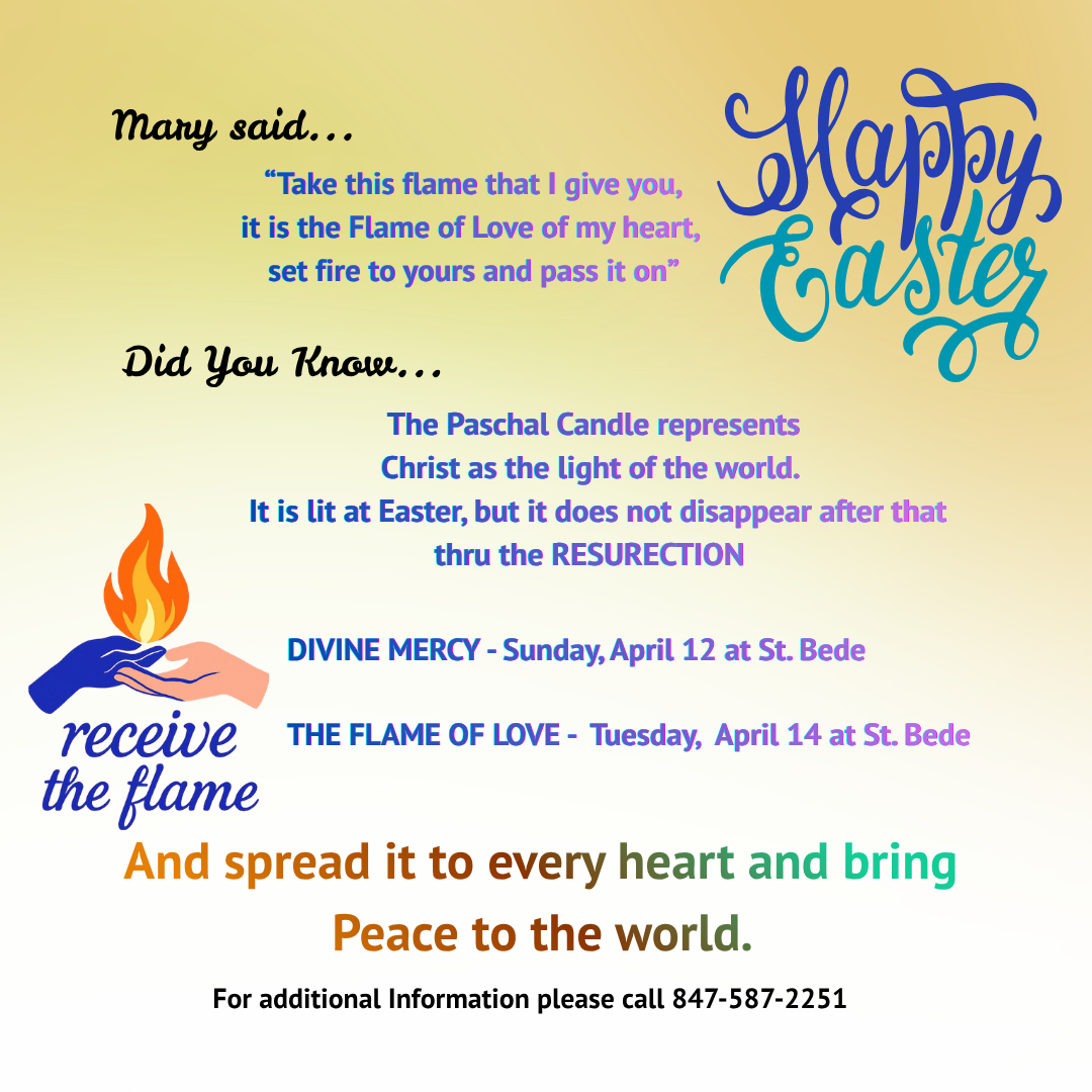 Keep up with our series in the bulletin here to learn more about the Flame of Love Devotion