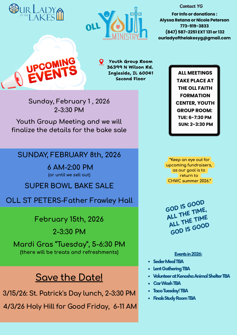 Our Lady of the Lakes Youth Ministry is on a mission to grow the faith of the youth. The present youth group was reestablished in 2023.